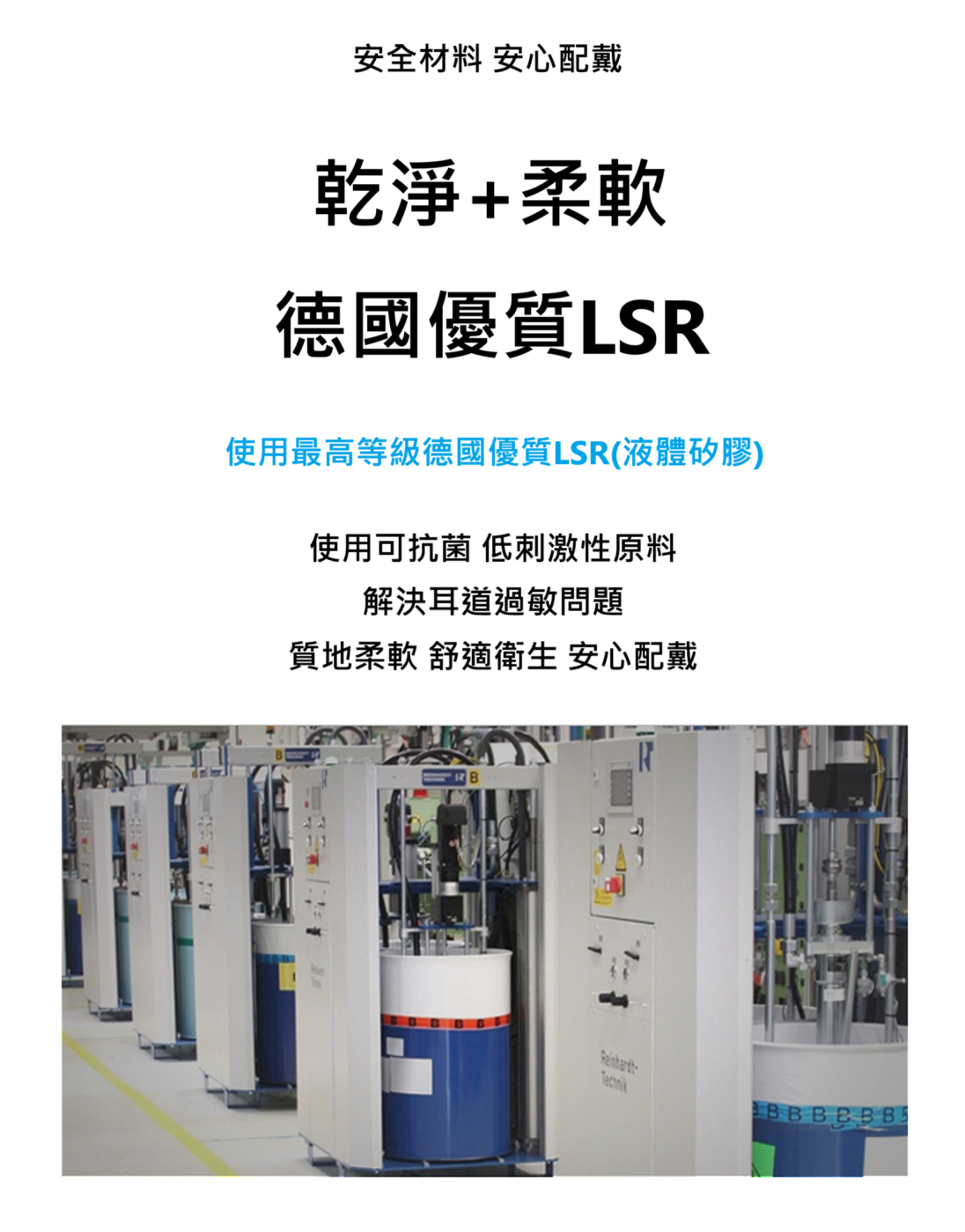 ● 德國優質LSR原料,有效抑菌耐用、防撕裂材質。(LSR:液態矽橡膠)