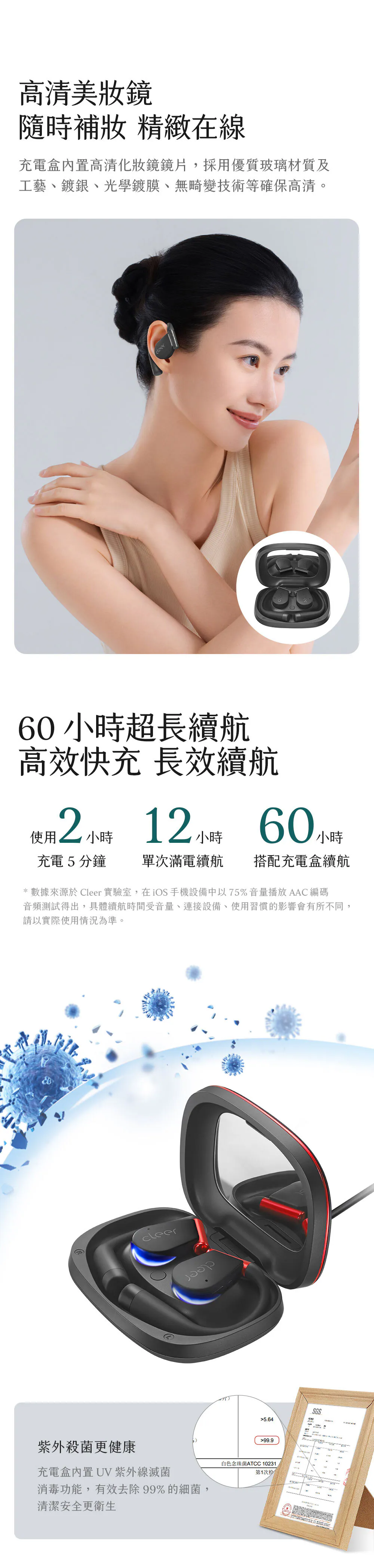 殺菌消毒|充電盒內建UV紫外線消毒燈,99.9%殺菌率
