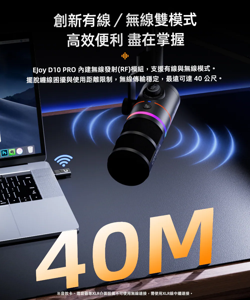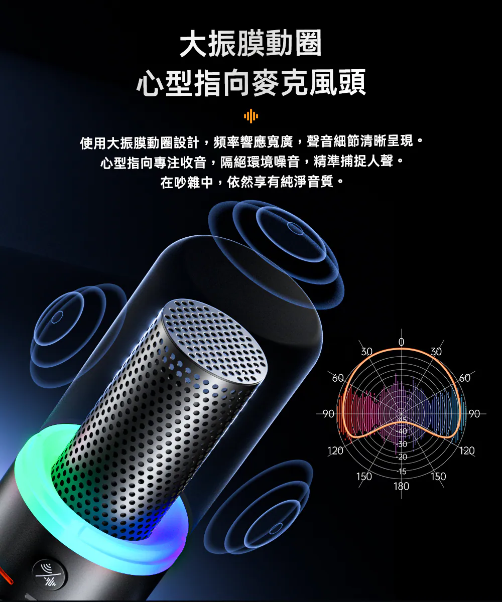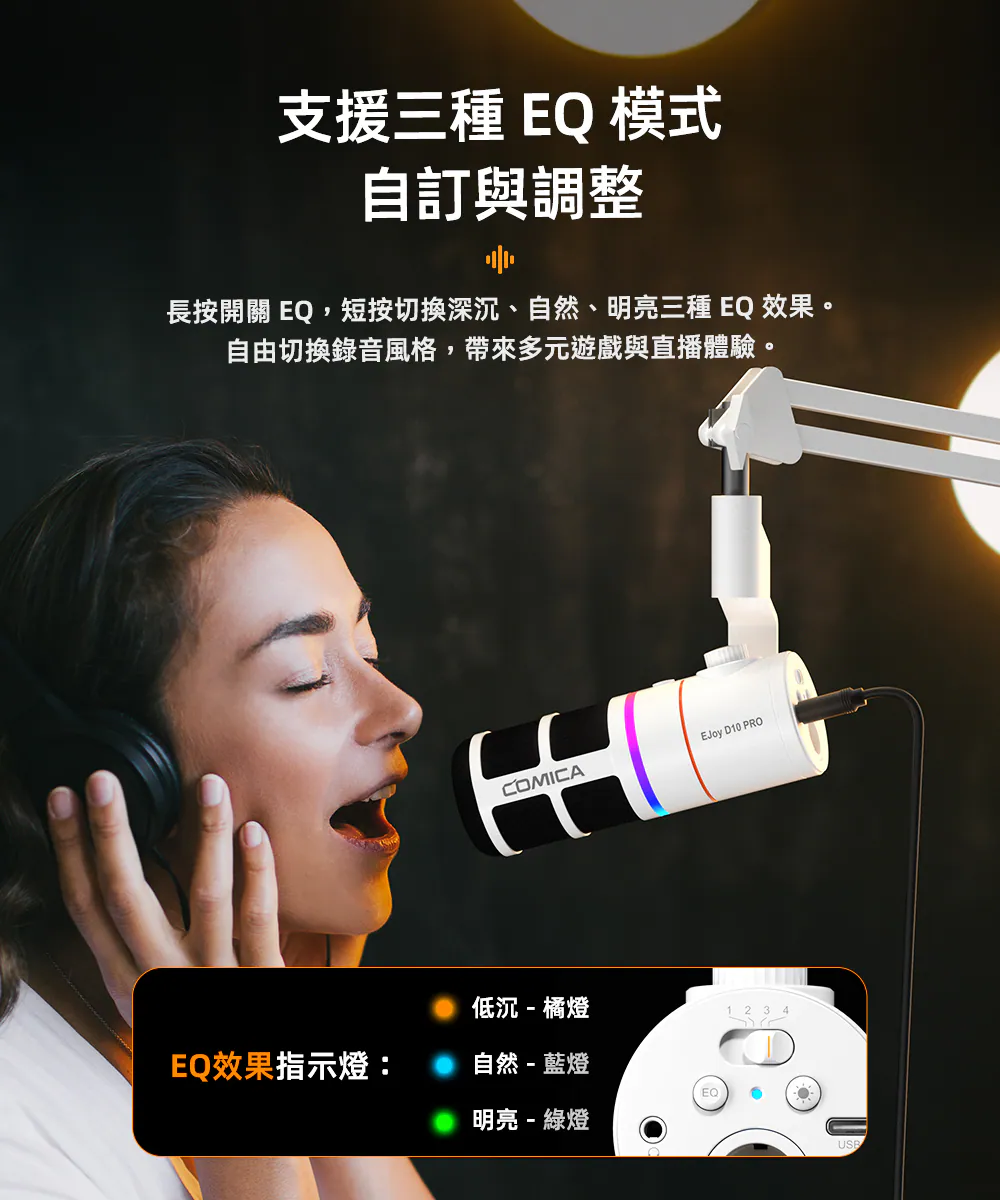 ● 支援增益調整、監聽、一鍵降噪與靜音