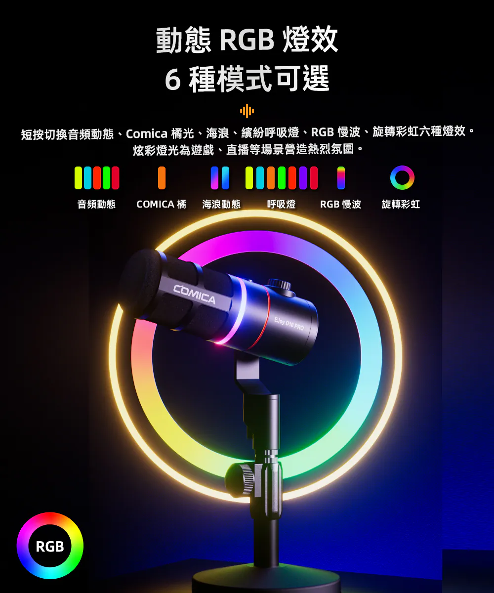 ● 6種動態 RGB 燈光效果