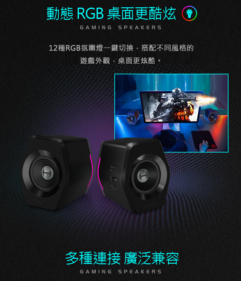 ● RGB電競氣氛燈,12種燈效模式任你選!!