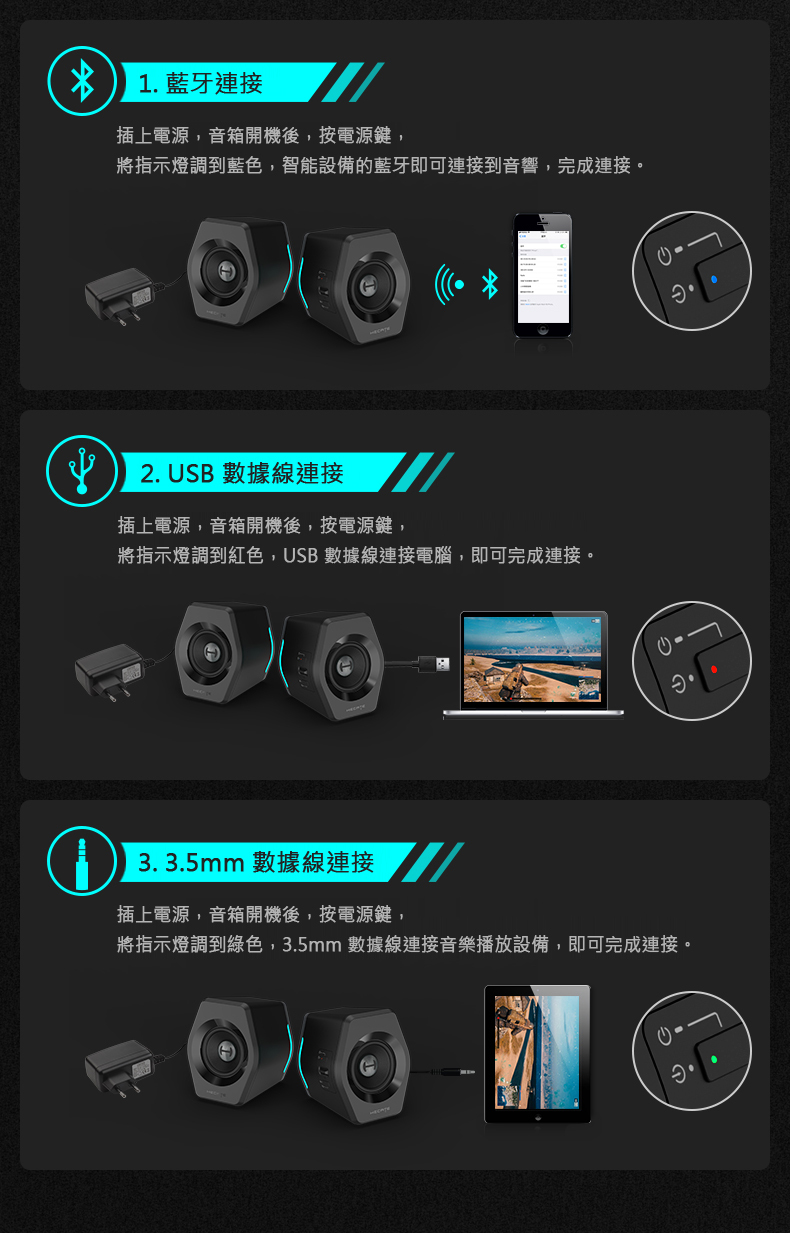 ● 支援一鍵切換藍芽、USB、AUX輸入模式