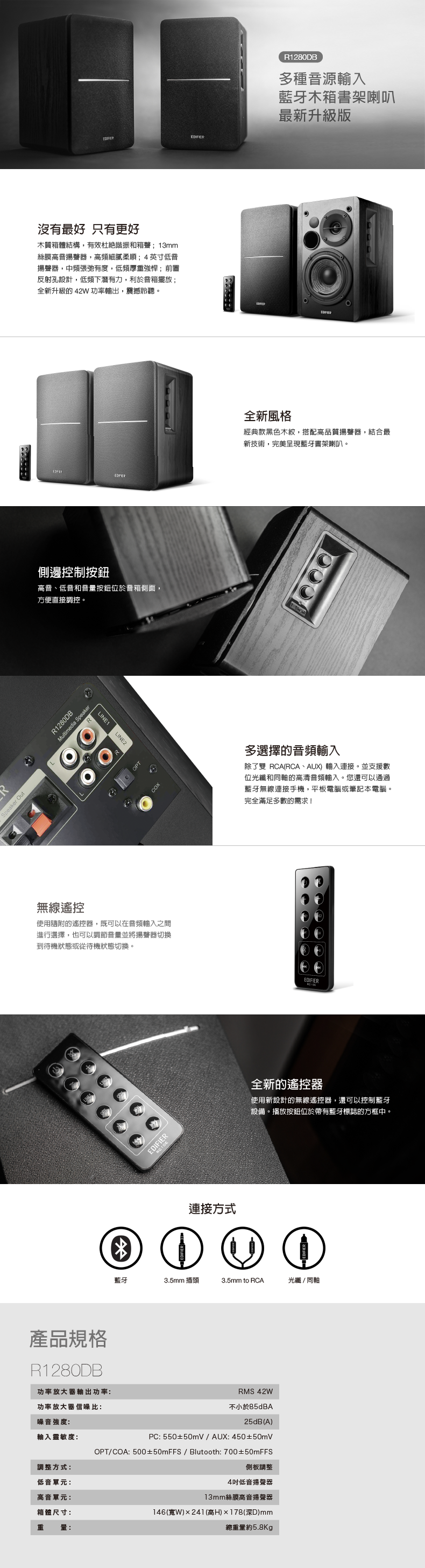 ● 支援藍牙、光纖、同軸、RCA/3.5mm