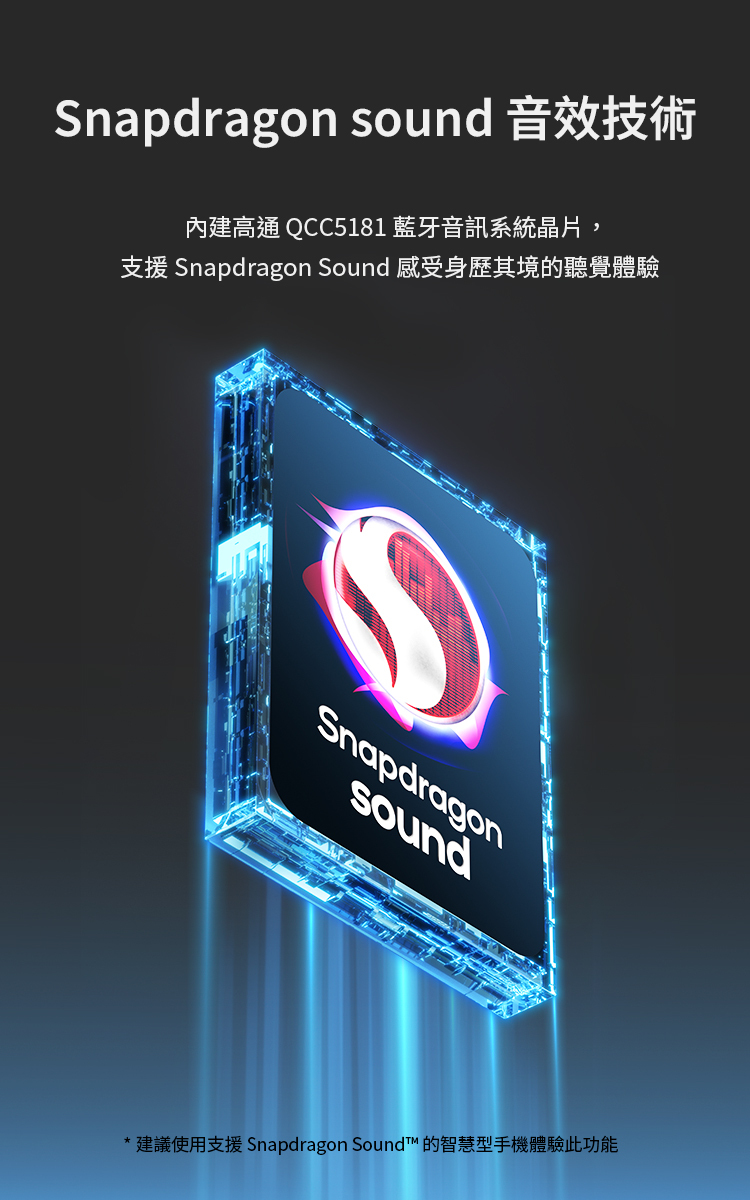 ● 支援napdragon Sound、高通®aptX™ Lossless、高通®aptX™Adaptive、高通aptX™HD、高通apt,LHDC、LDAC、AAC、SBC等高音質解碼技術
