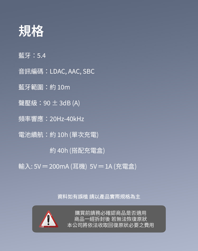 ◎耳機的替換耳塞、替換耳罩均屬於個人衛生用品,購買後若拆封使用,無法退換貨,下單前請留意