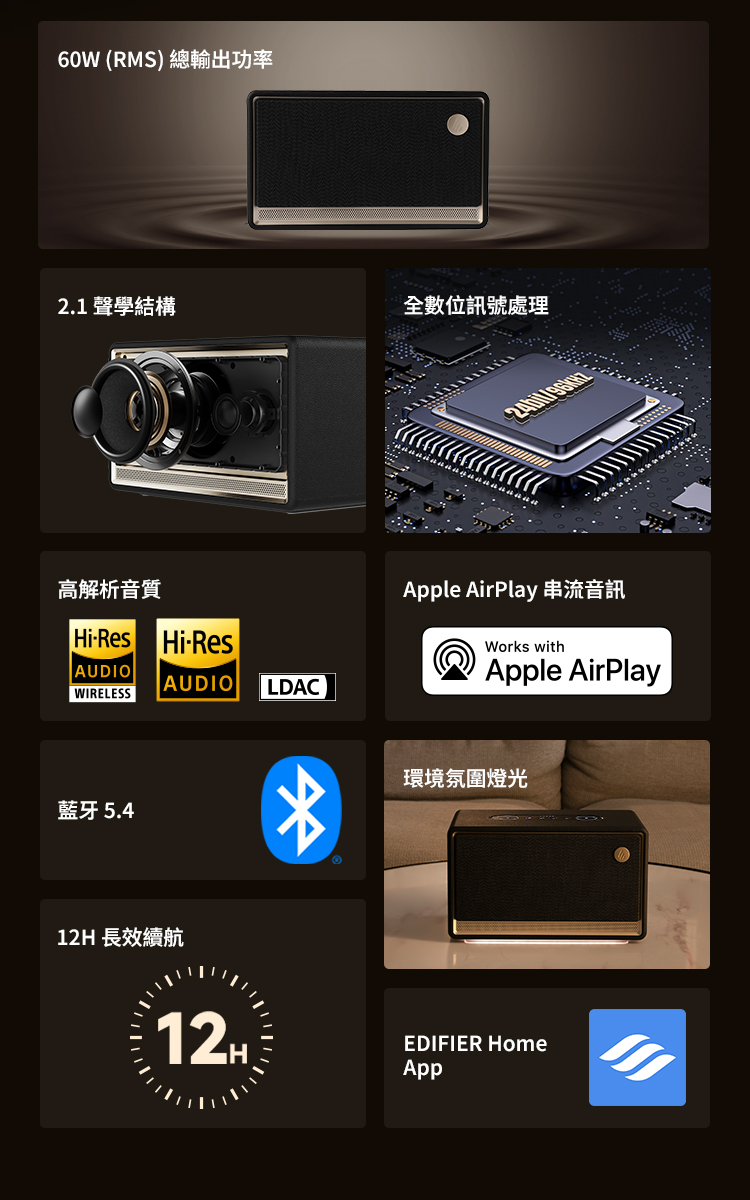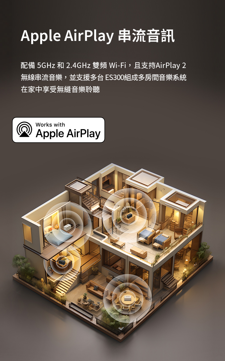 ● 配備 5GHz 和 2.4GHz 雙頻 WiFi;支持 AirPlay 串流 打造雙聲道音場