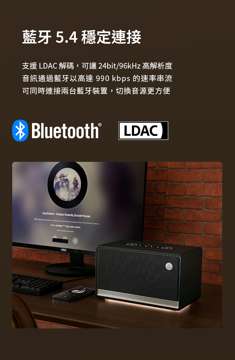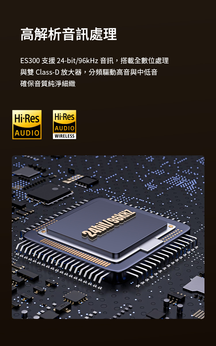 ● 支援 24-bit/96 kHz 高解析音訊 音質純淨細緻
