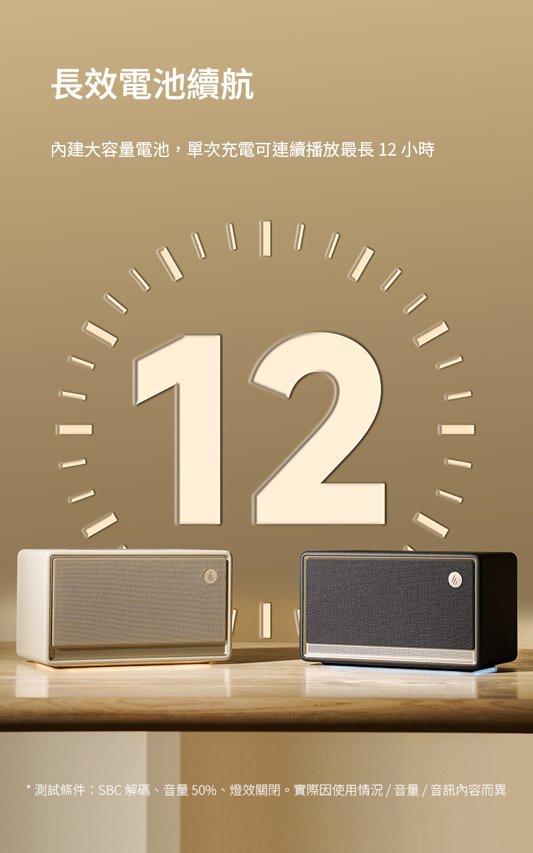 ● 大容量電池 12 小時播放續航力 音樂帶著走