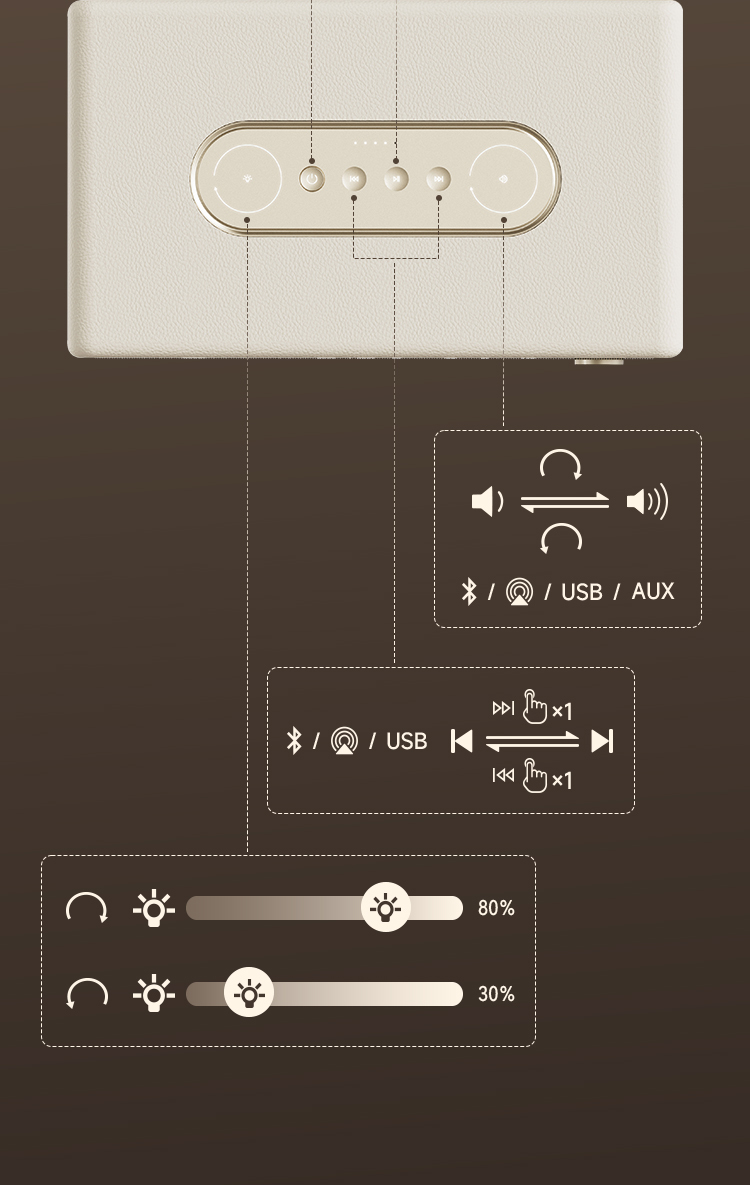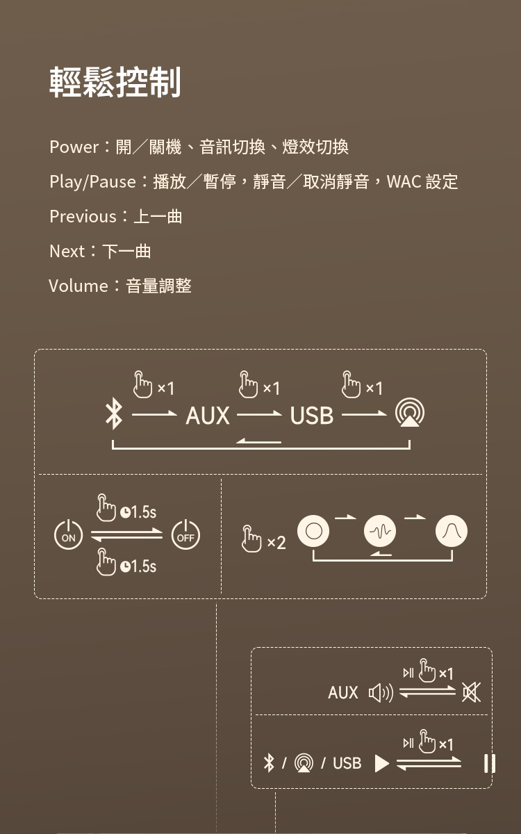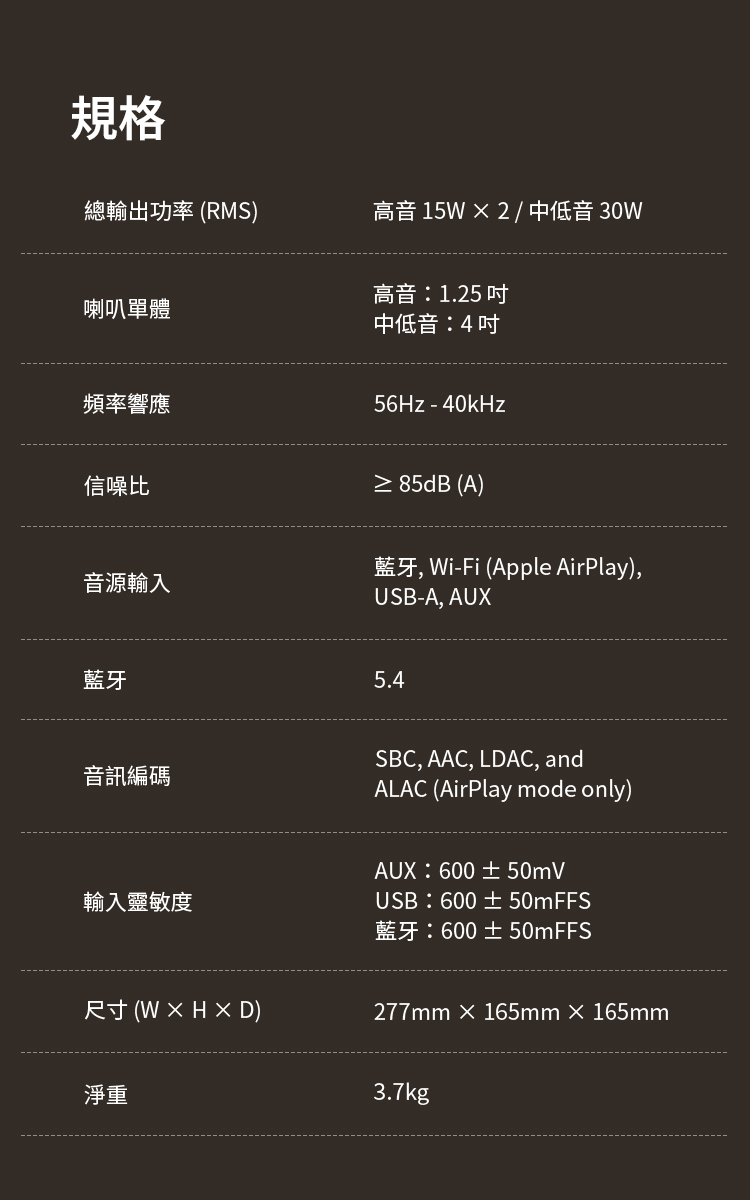 ● 支持多元輸入:AUX/USB-A/AirPlay/藍牙