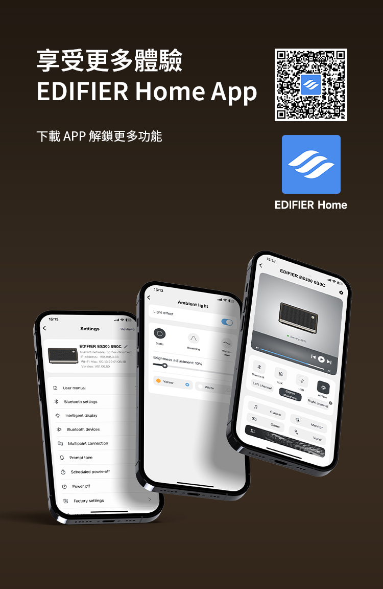 ● EDIFIER Home APP ;內建氛圍燈系統 變身小夜燈