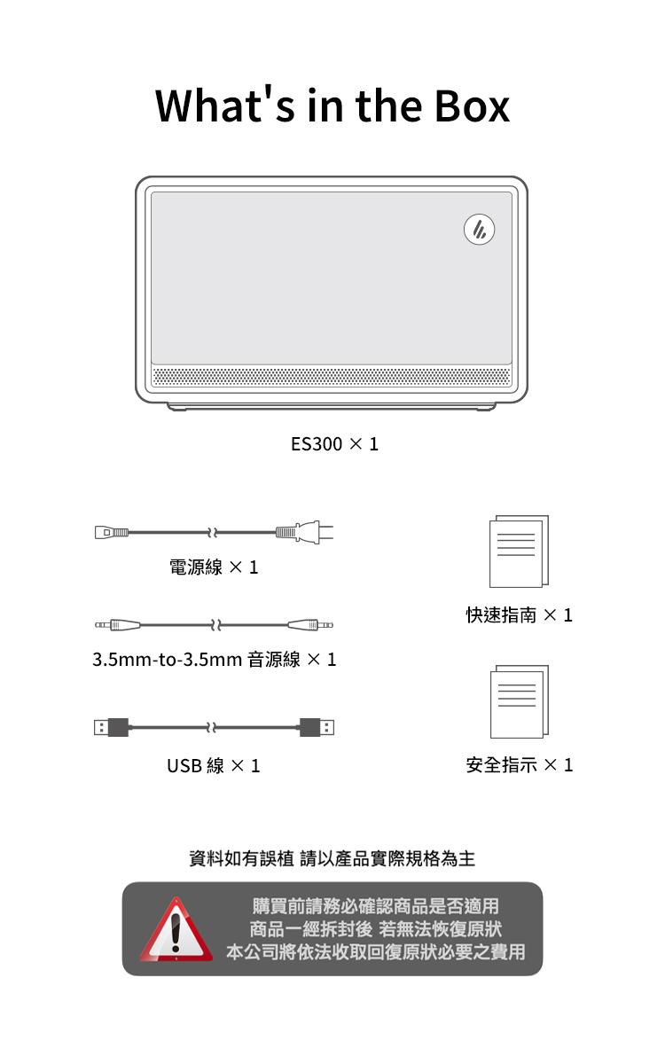 請您於收到商品後先檢查核對所購買商品的型號及數量是否正確、外觀是否完整,並檢查配件贈品等內容物是否有短少,如購買商品並無損壞缺件等情況,並已開始使用則視為同意接受這個商品,願意買受。