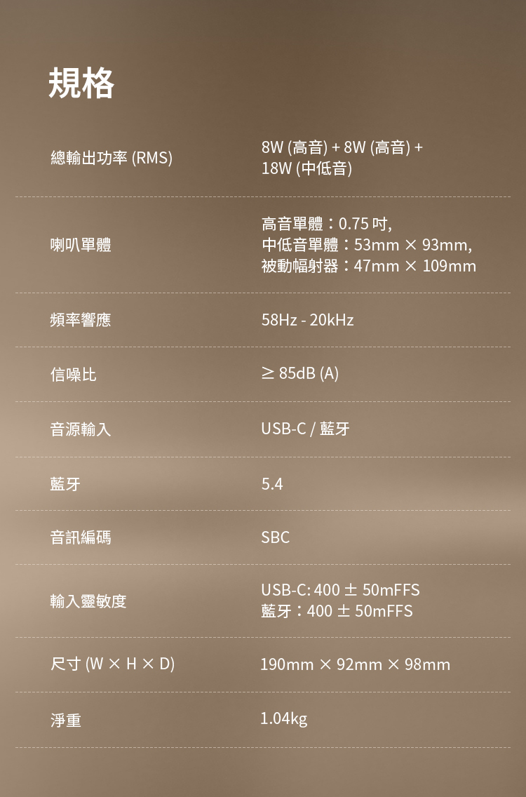 ● RMS 34W 雙喇叭 TWS 串聯技術 打造雙聲道音場