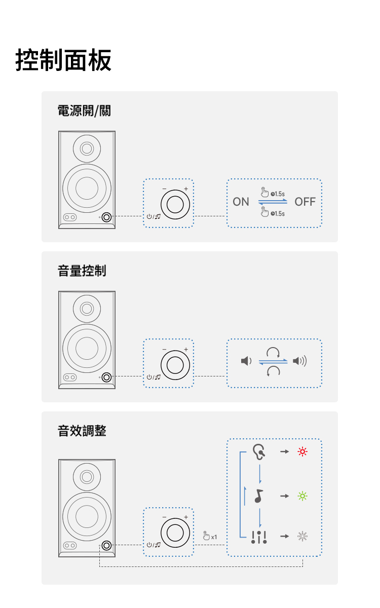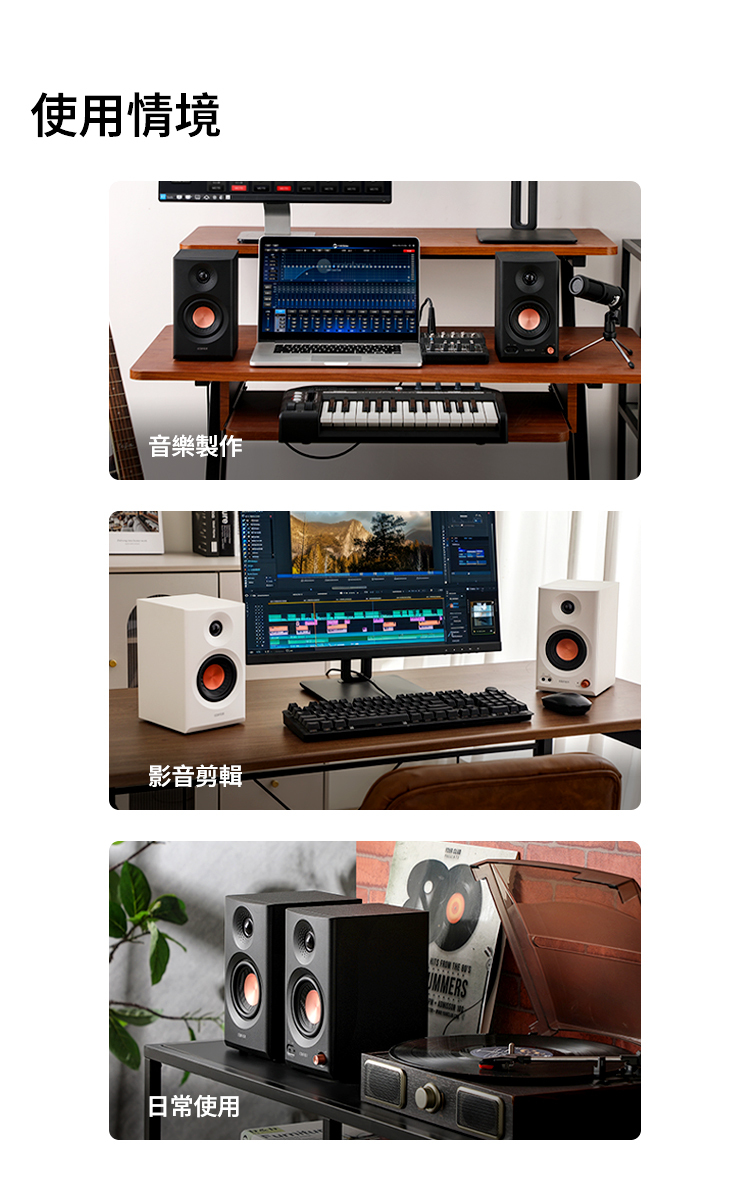 ● 專業連接介面:TRS / RCA / AUX/藍牙/耳機輸出