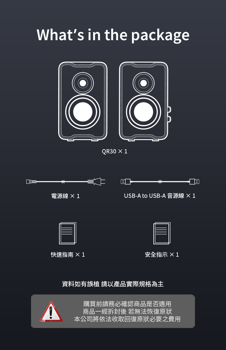 請您於收到商品後先檢查核對所購買商品的型號及數量是否正確、外觀是否完整,並檢查配件贈品等內容物是否有短少,如購買商品並無損壞缺件等情況,並已開始使用則視為同意接受這個商品,願意買受。