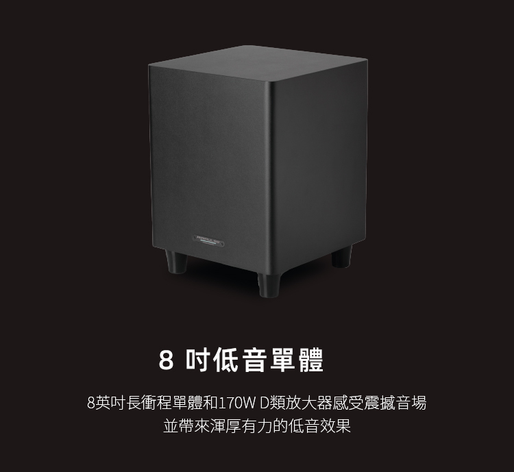 ● 8 吋長衝程低音單體 延展性好 覆蓋範圍廣 低頻可達 25Hz