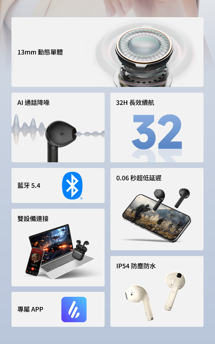 ● 雙設備連接|音樂遊戲雙模式|IP54防塵防水