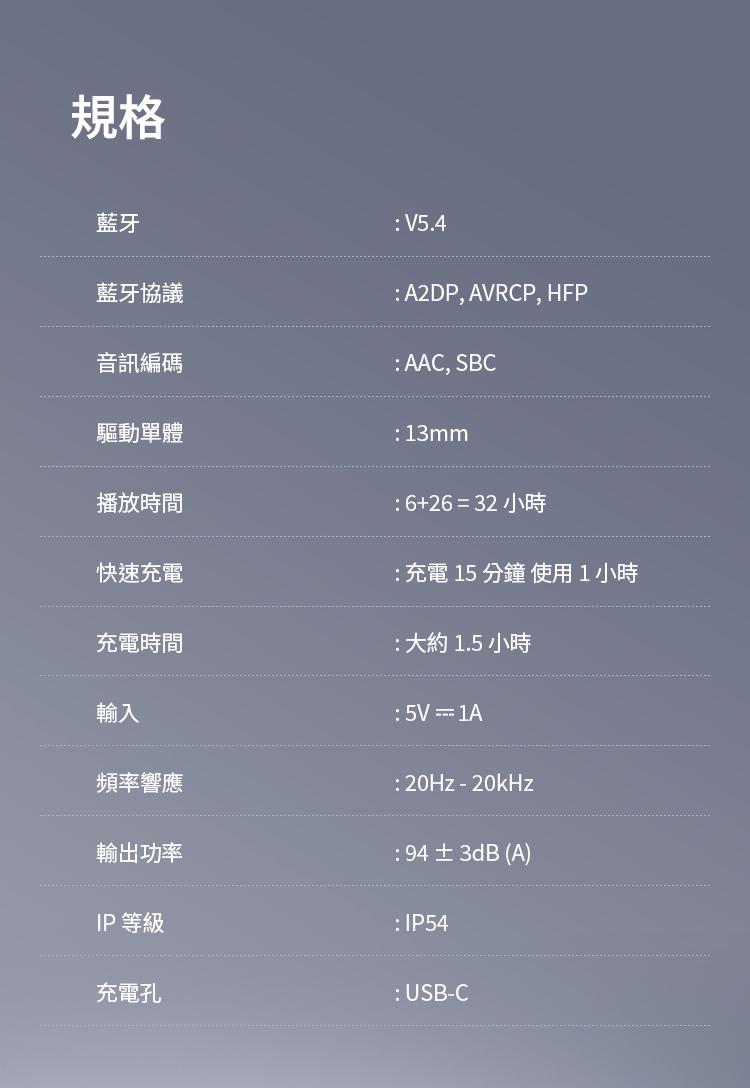 ● 32hr 複合續航|快充 15 分鐘可使用 1 小時