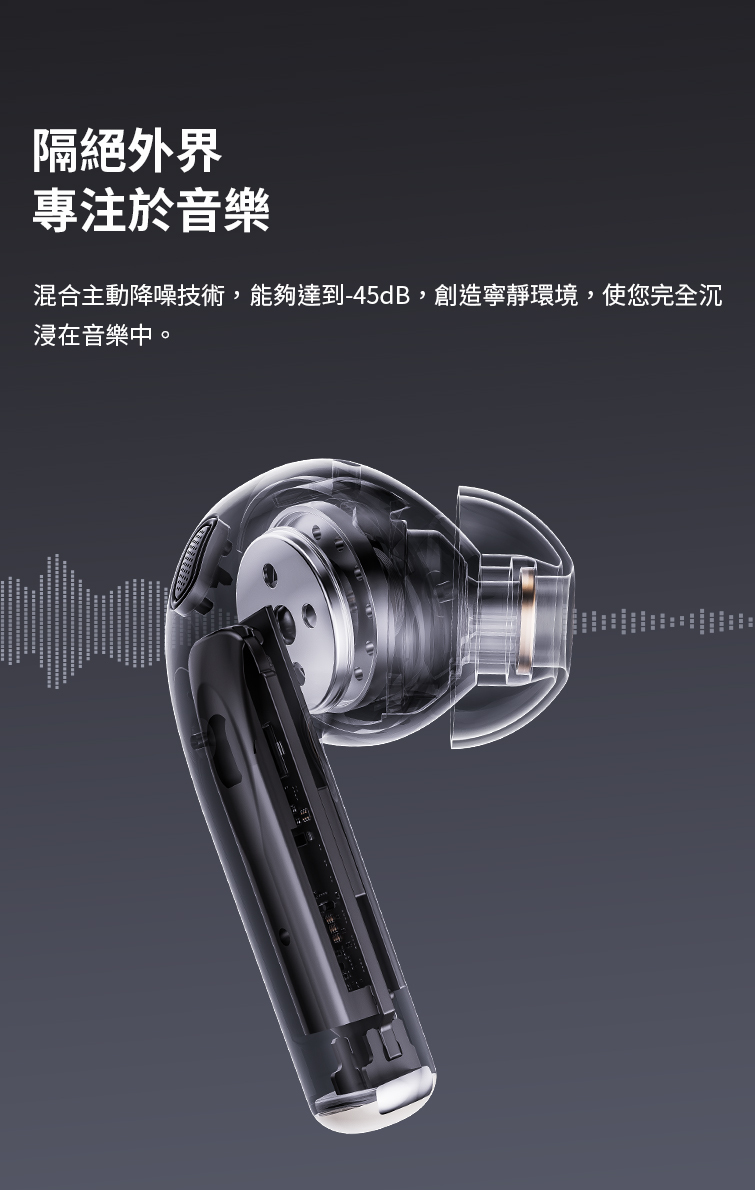 ● ANC 主動式降噪降至 -45dB|環境通透模式