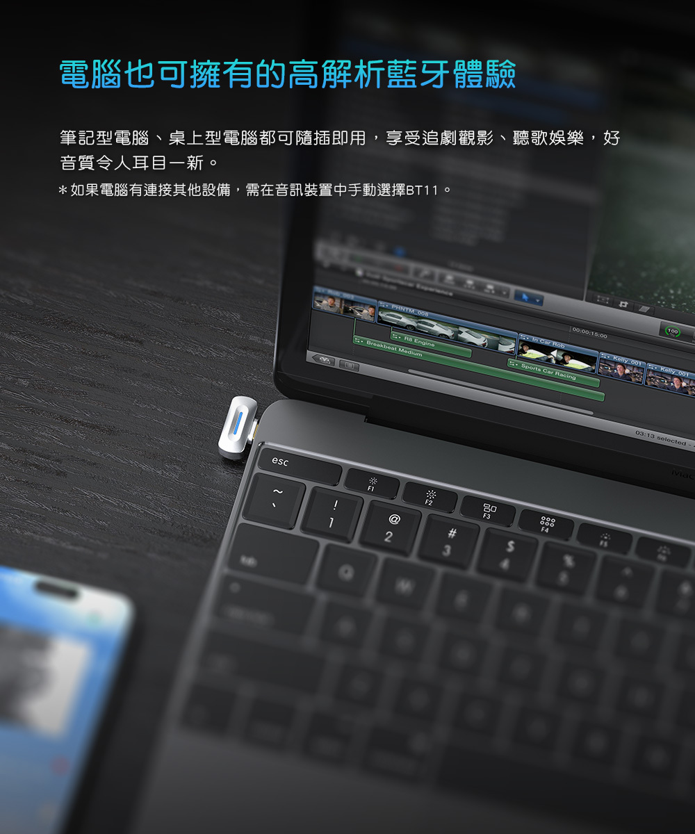 電腦也可擁有的高解析藍牙體驗|筆記型電腦、桌上型電腦都可隨插即用,享受追劇觀影、聽歌娛樂,好音質令人耳目一新。