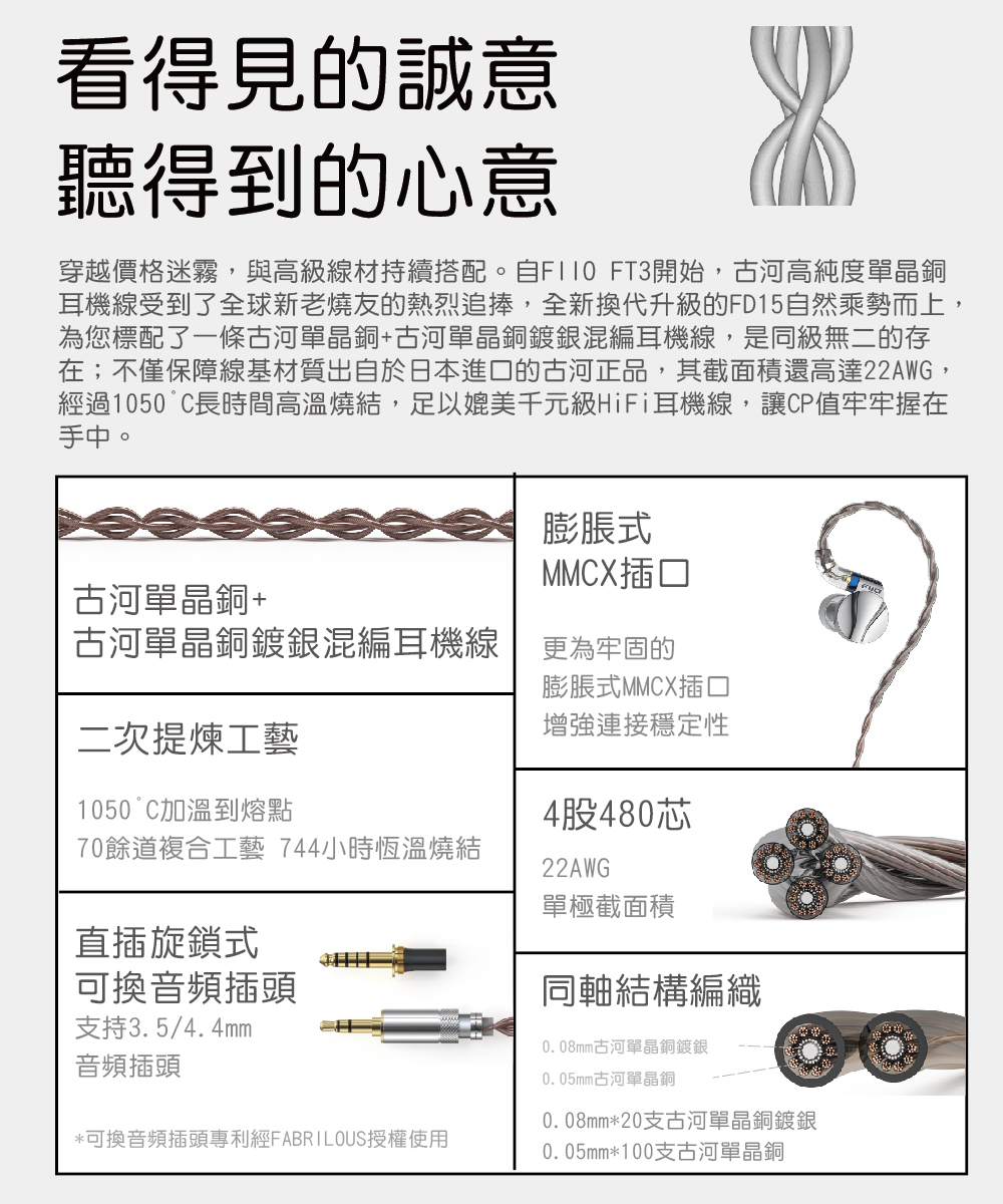 ● 古河單晶銅+古河單晶銅鍍銀混編耳機線