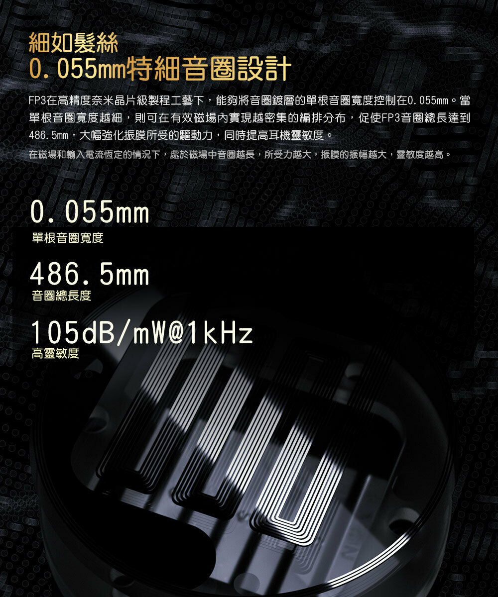 ● 0.055mm特細音圈設計