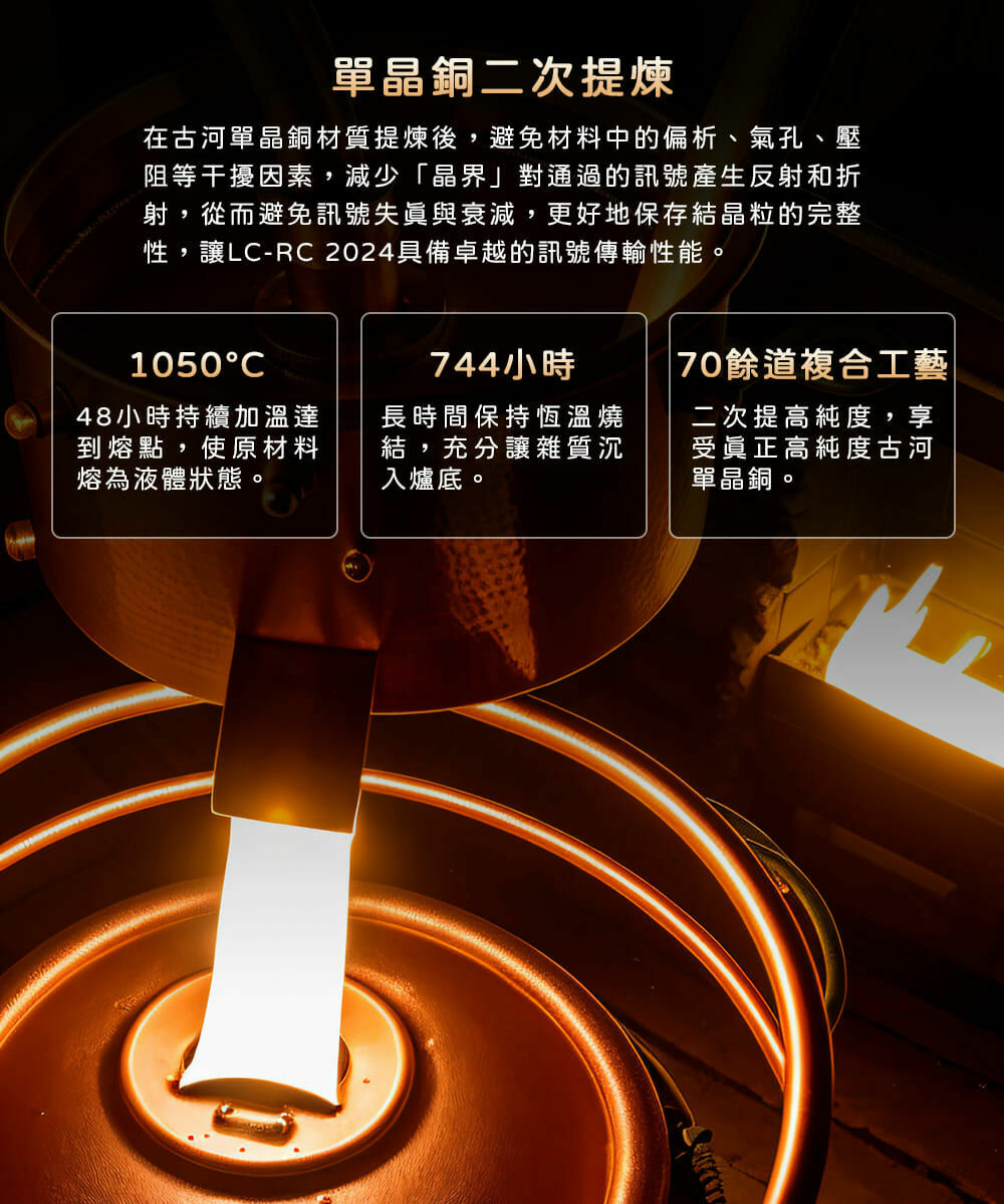 ● 二次提煉高純度古河單晶銅+古河單晶銅鍍銀線芯