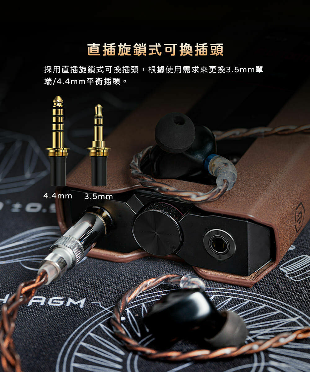● 直插旋鎖式可換插頭3.5/4.4mm