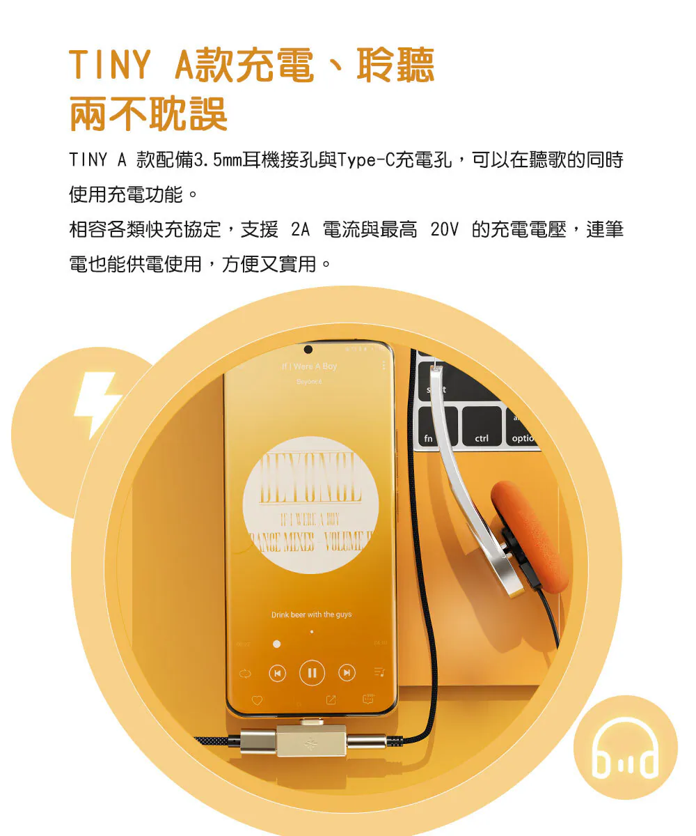 ● 支援充電、聽歌同步(A款)