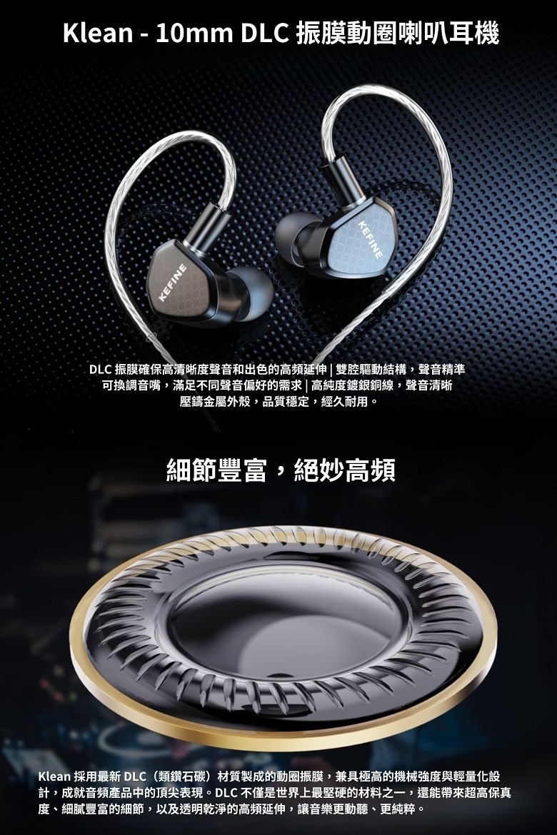 ● 採用先進DLC振膜,呈現高清晰度音質與卓越延伸