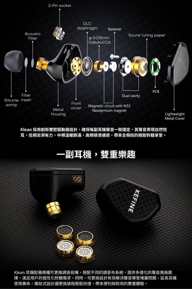 ● 雙腔體驅動設計,帶來精準細膩的聲音表現