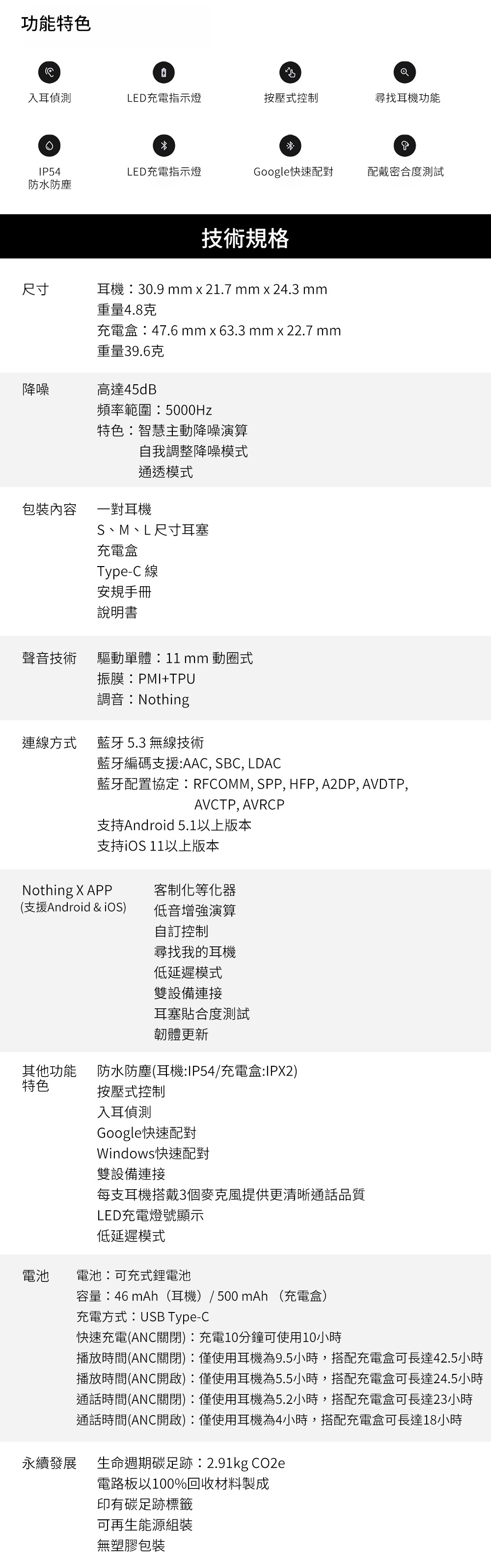 ● Nothing X專用App,提供自訂EQ、主動降噪、低音強化、自訂控制、雙重連線功能