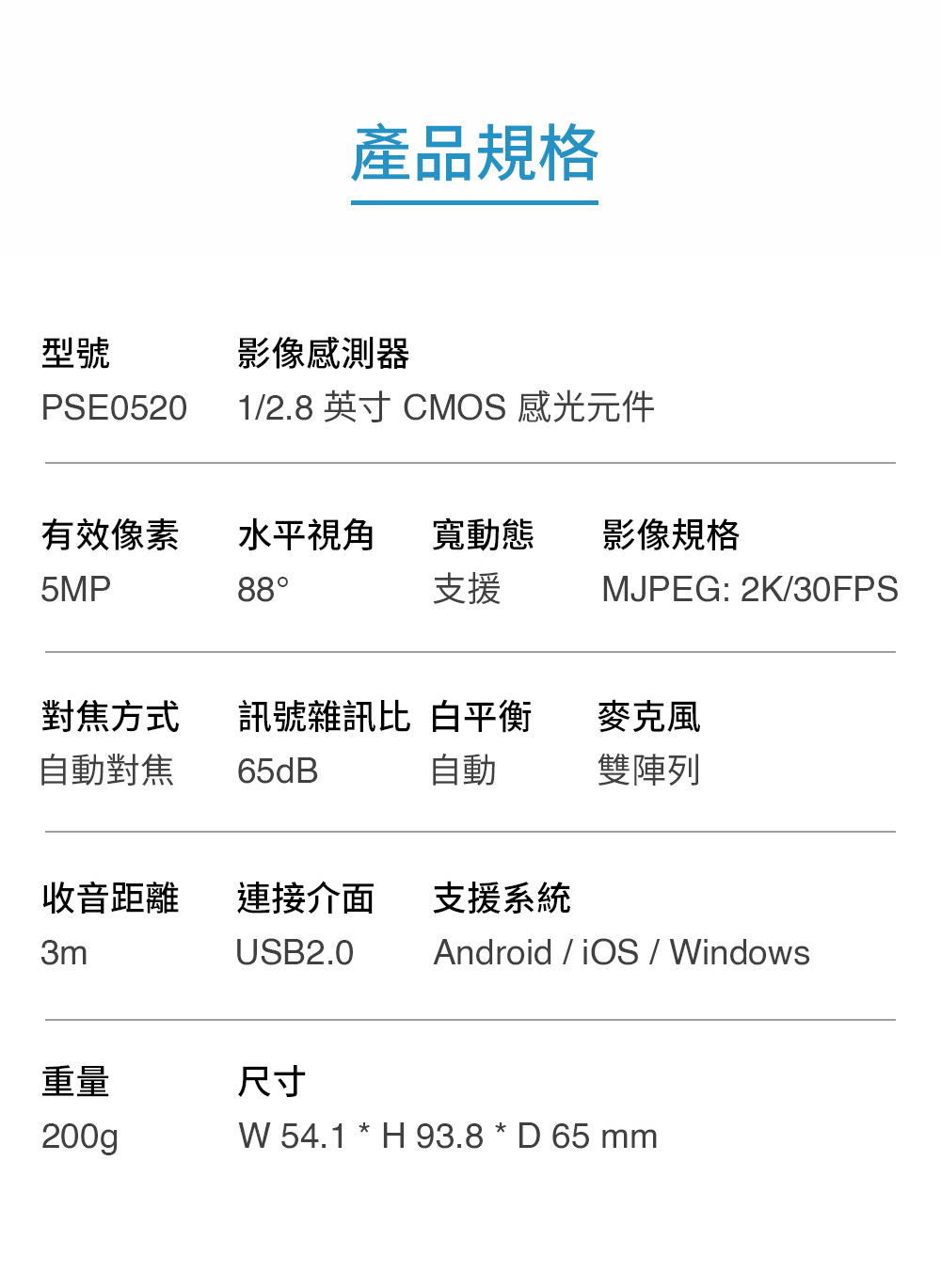 ● 清晰畫面|高精密光學5片玻璃組,有效成像聚焦