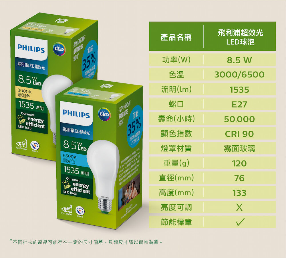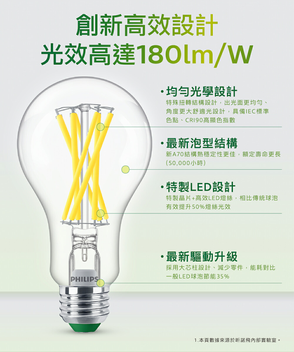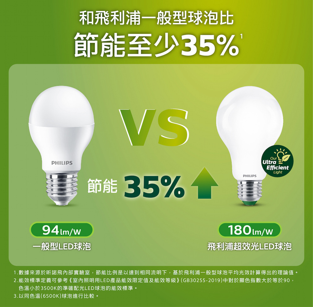 ● 1顆超光效燈泡的壽命=6顆省電螺旋燈泡的壽命