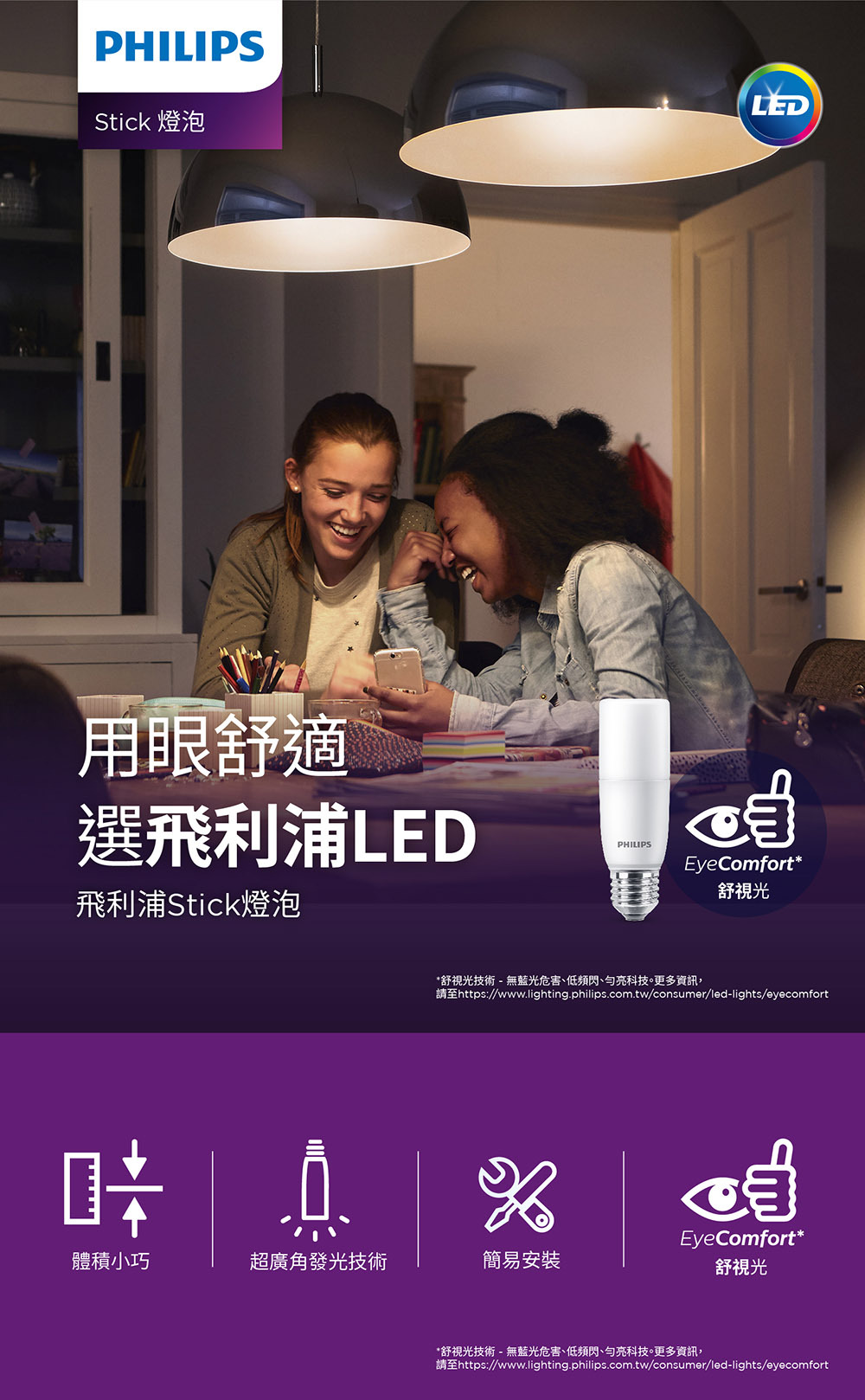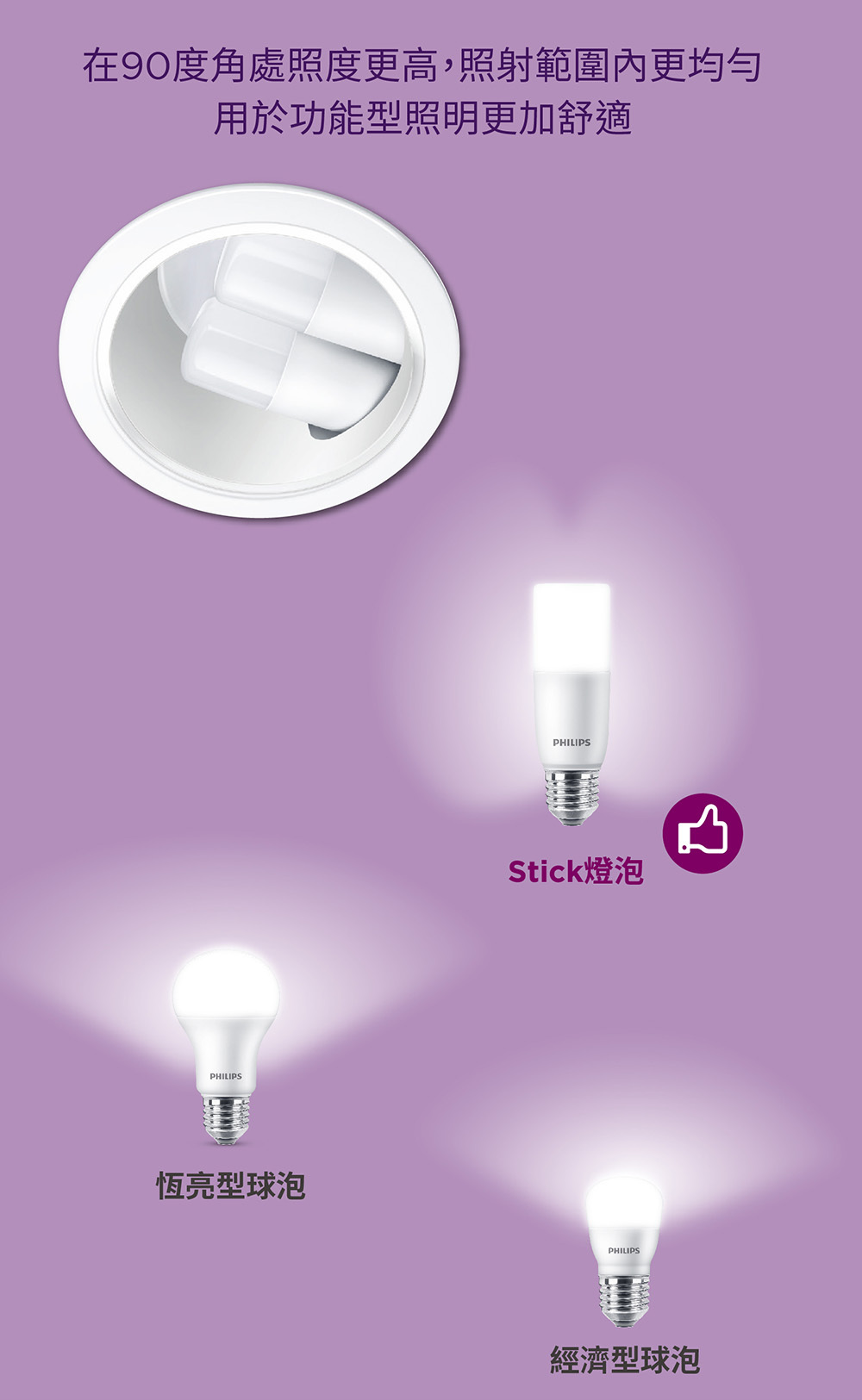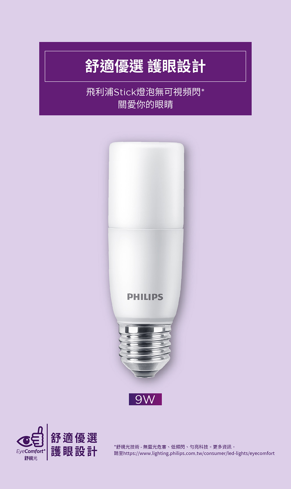 ■ 型號 :Philips 飛利浦 9W LED Stick超廣角燈泡-黃光3000K (PS003)