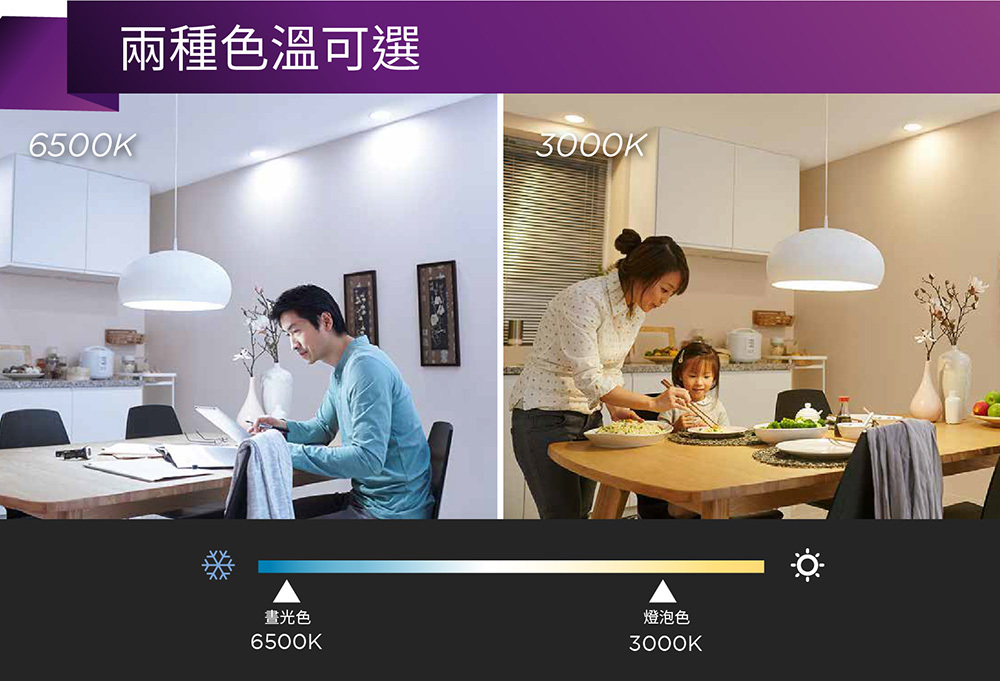 ● 色溫:6500K/1100LM - 黃光3000K/1000LM