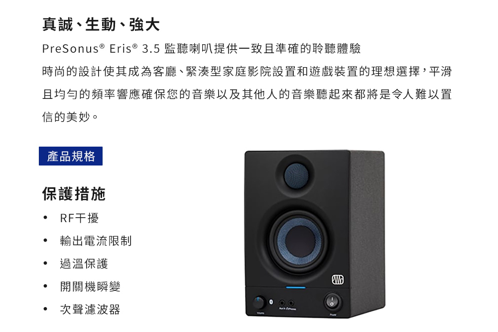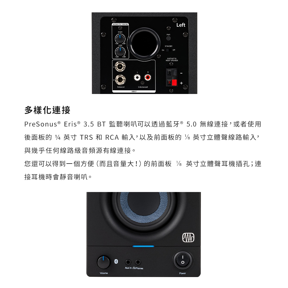 ● 採用3.5吋低音單體的結構和特性,使用者能感受到紮實飽滿的低音