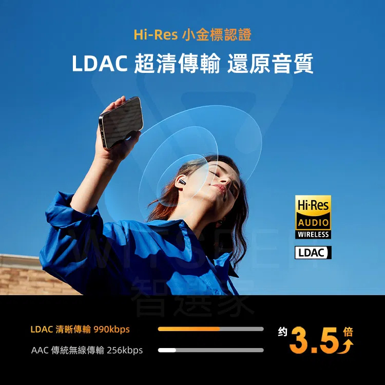 ● 採用 LDAC 傳輸技術,完整呈現 Hi-Res 高解析音質,聲聲清晰