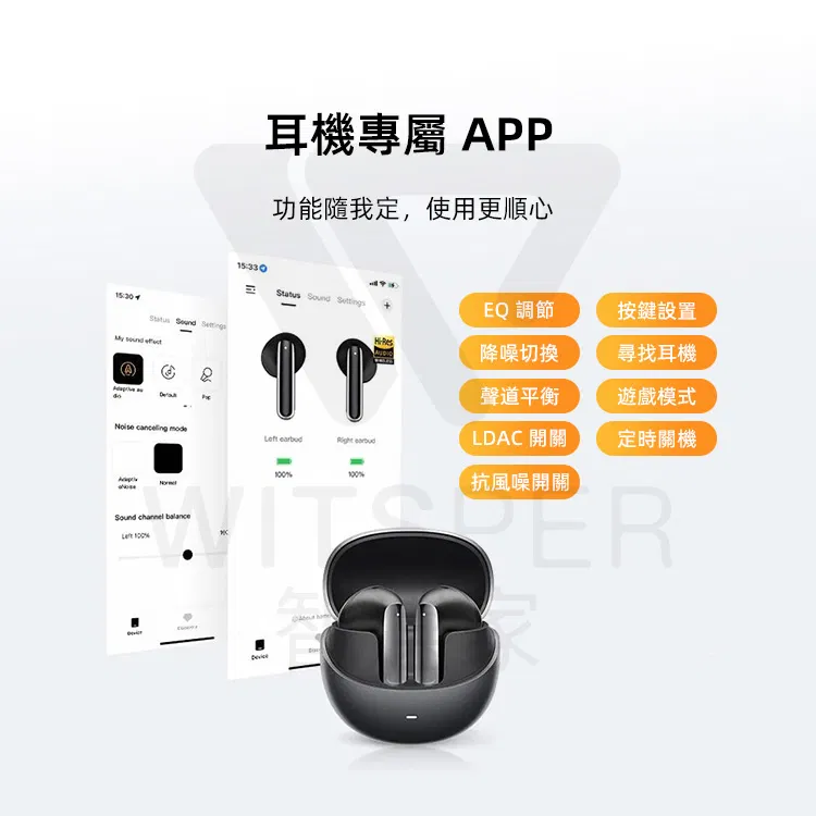 ● App 功能完整,隨喜好調整 EQ/降噪程度/左右聲道等