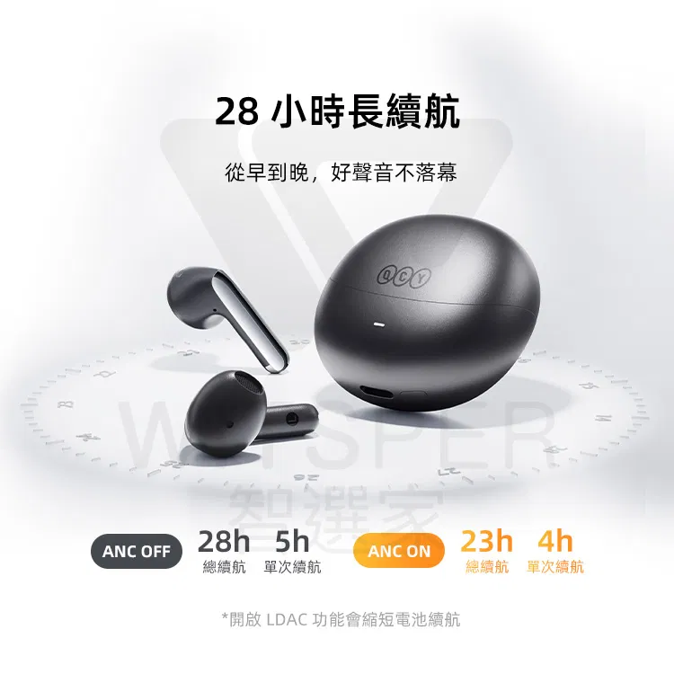 ● 稀有半入耳式主動降噪,過濾環境噪音,同時享受舒適
