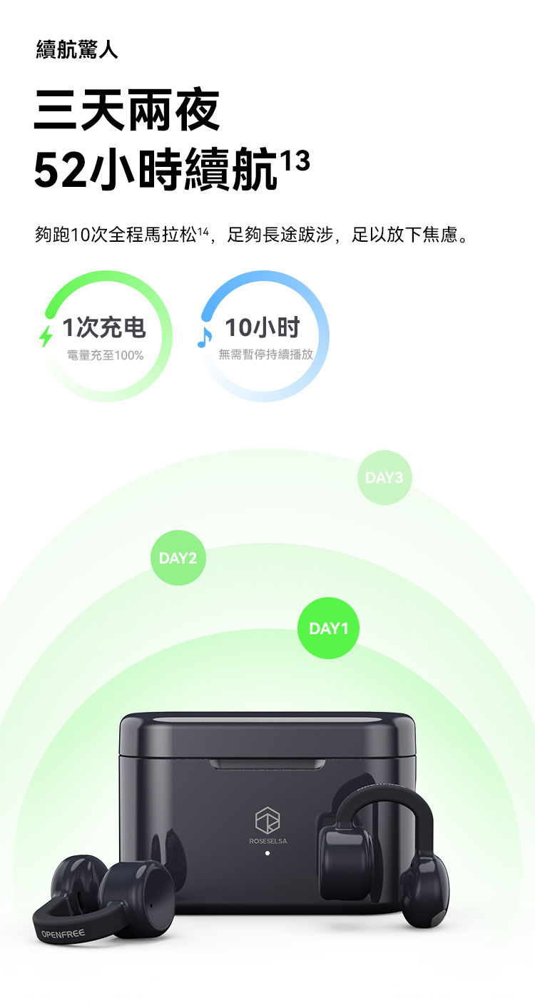 ● 52小時超長續航,一次充電暢玩三天兩夜