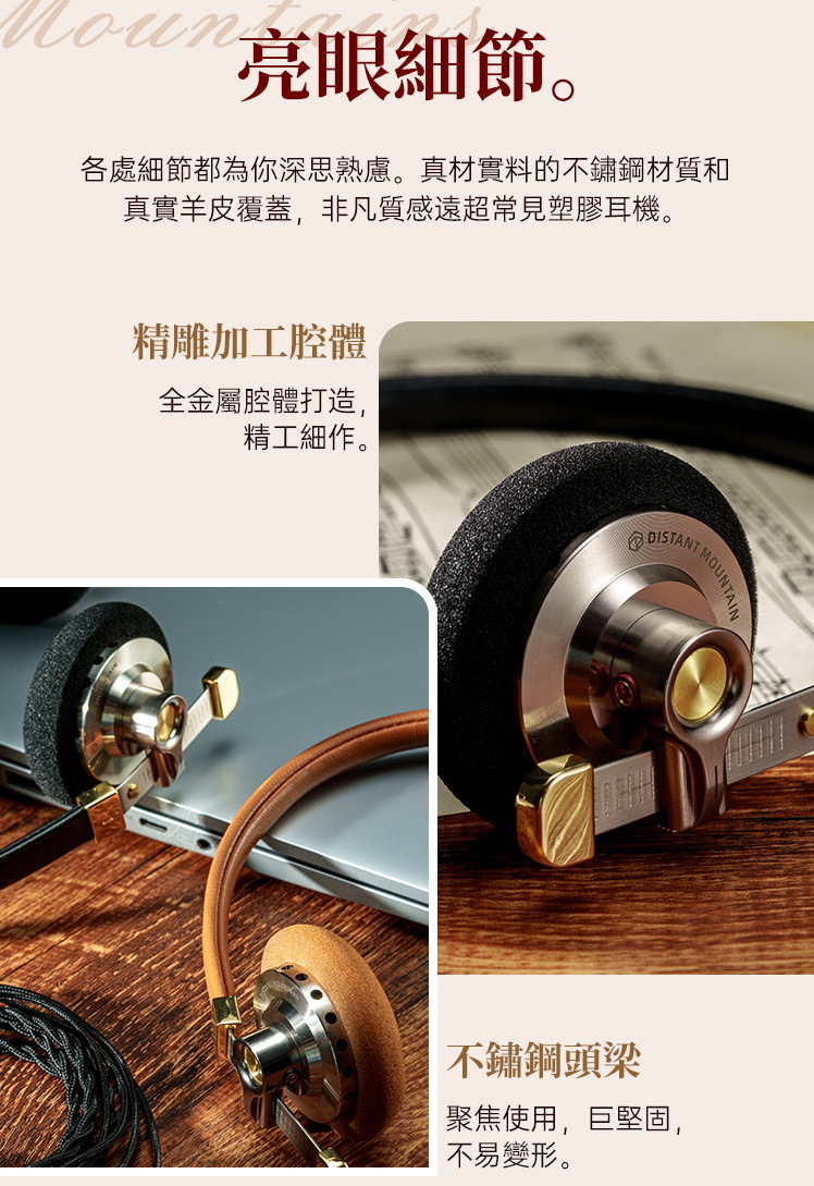 為了提升聆聽體驗,遠山耳機搭載超寬頻單元,內建超磁力釹磁鐵,帶來更豐富的音樂細節和自然的高低音延伸。複合拓撲振膜設計精妙,使高音清晰透亮、低音震撼深沉,全頻段表現更上一層樓。