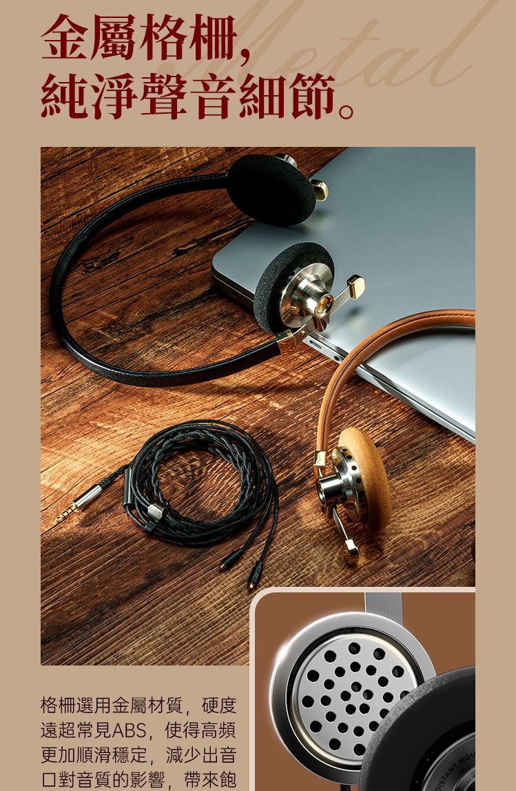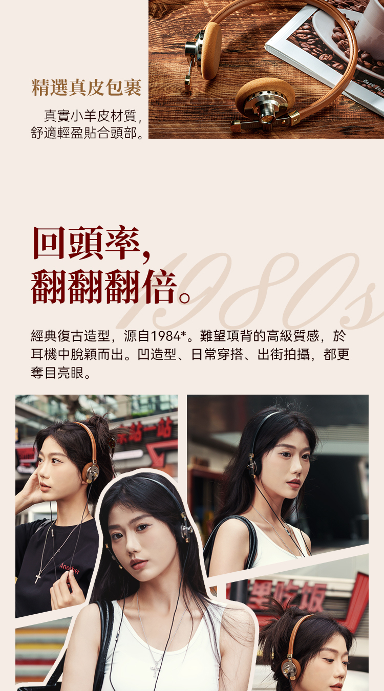 在復古風潮持續回溫的時代,「遠山」頭戴耳機以亮面金屬外殼與真材實料的不鏽鋼結構,展現令人驚豔的高級質感。源自 1984 年經典外型靈感,讓你在日常穿搭、街拍或是凹造型時,成為眾人目光焦點。