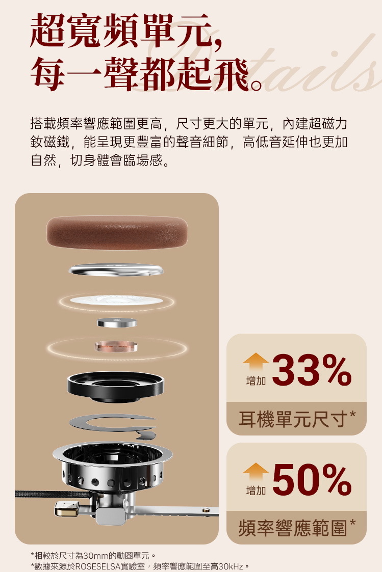 ● 超寬頻單元搭配複合拓撲振膜,音質細膩渾厚,感受震撼臨場感