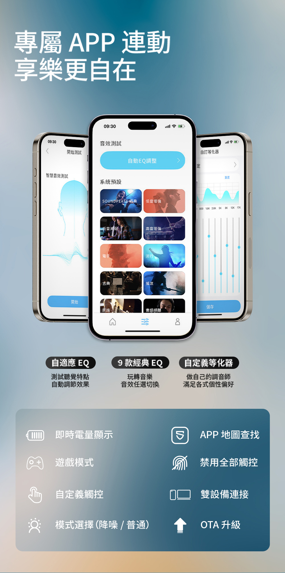 ● IPX5 防水、雙設備連接、專屬 APP EQ 自訂調音