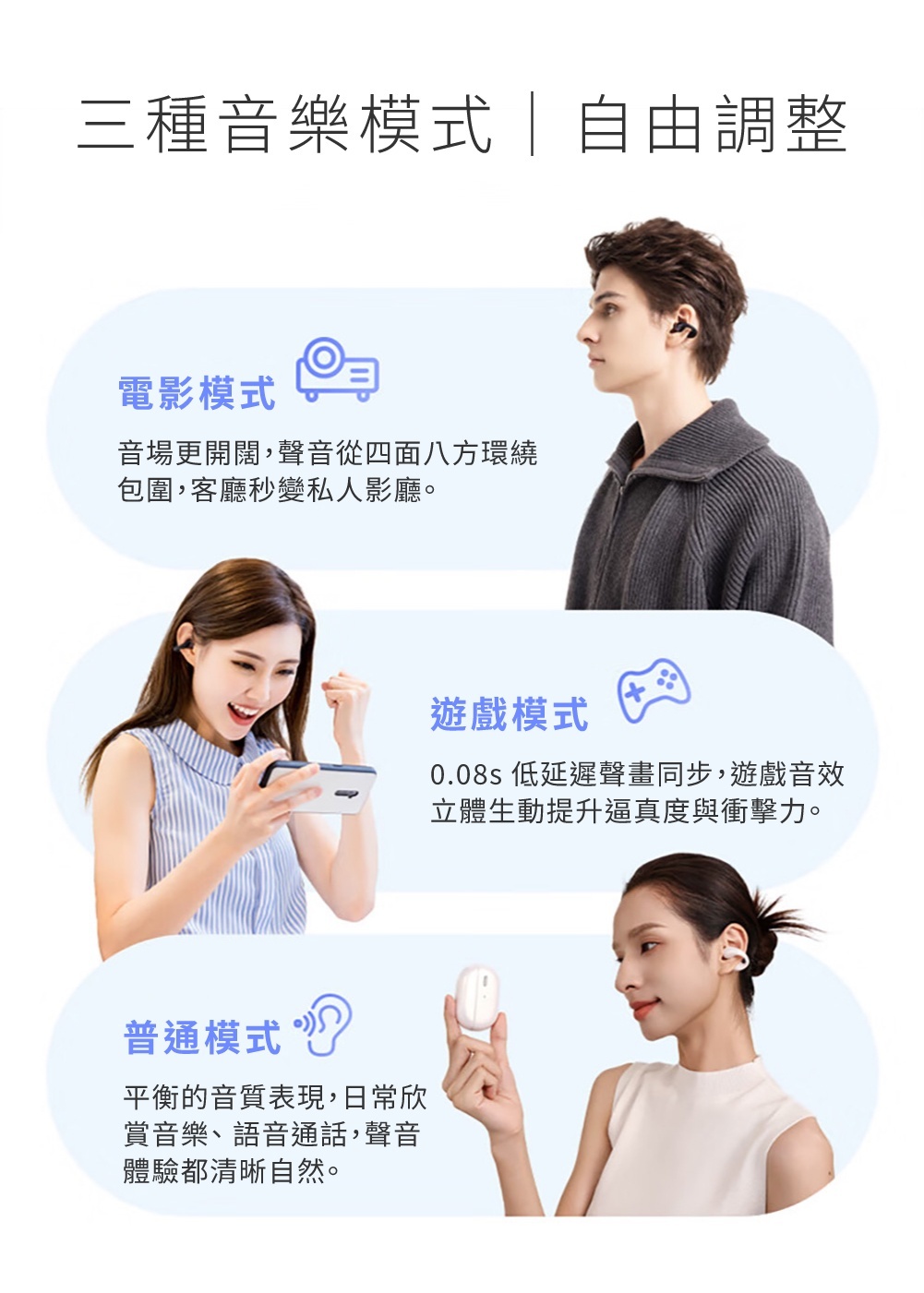 ● 三種音樂模式,電影/音樂/日常