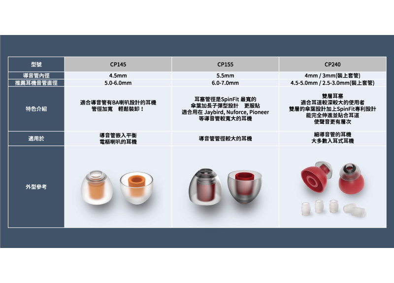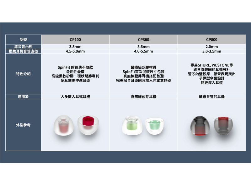 ● 與品牌Campfire合作,在Comet和Atlas等耳機的配件中都可以發現SpinFit CP100的蹤影