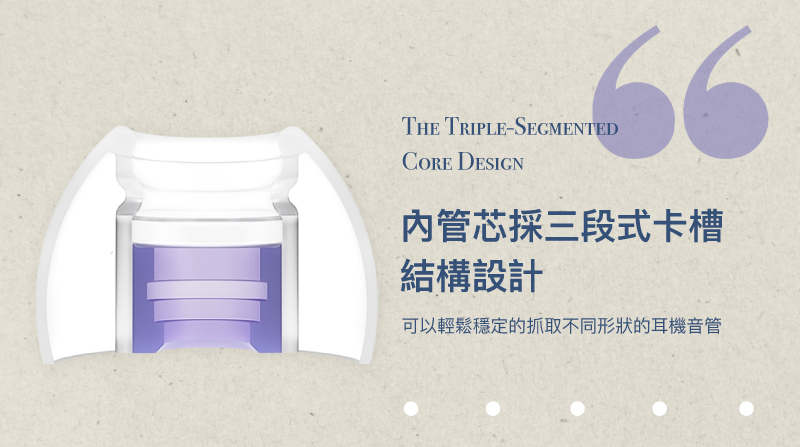 ● 內管芯採三段式卡槽結構,抓取不同形狀耳機音管