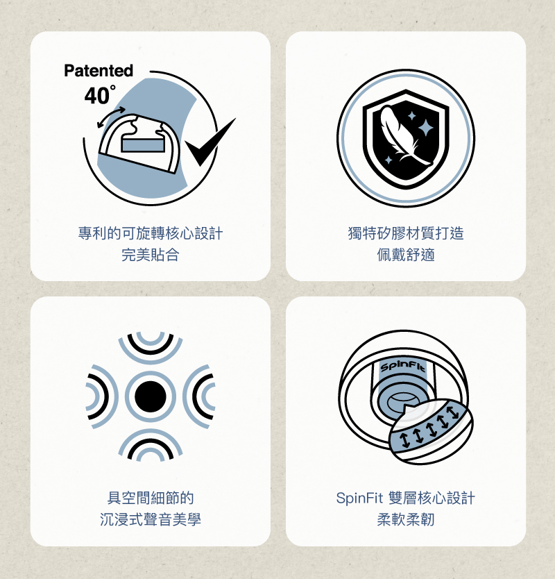 ● 管芯印有SpinFit Logo,對使用者的堅定保證