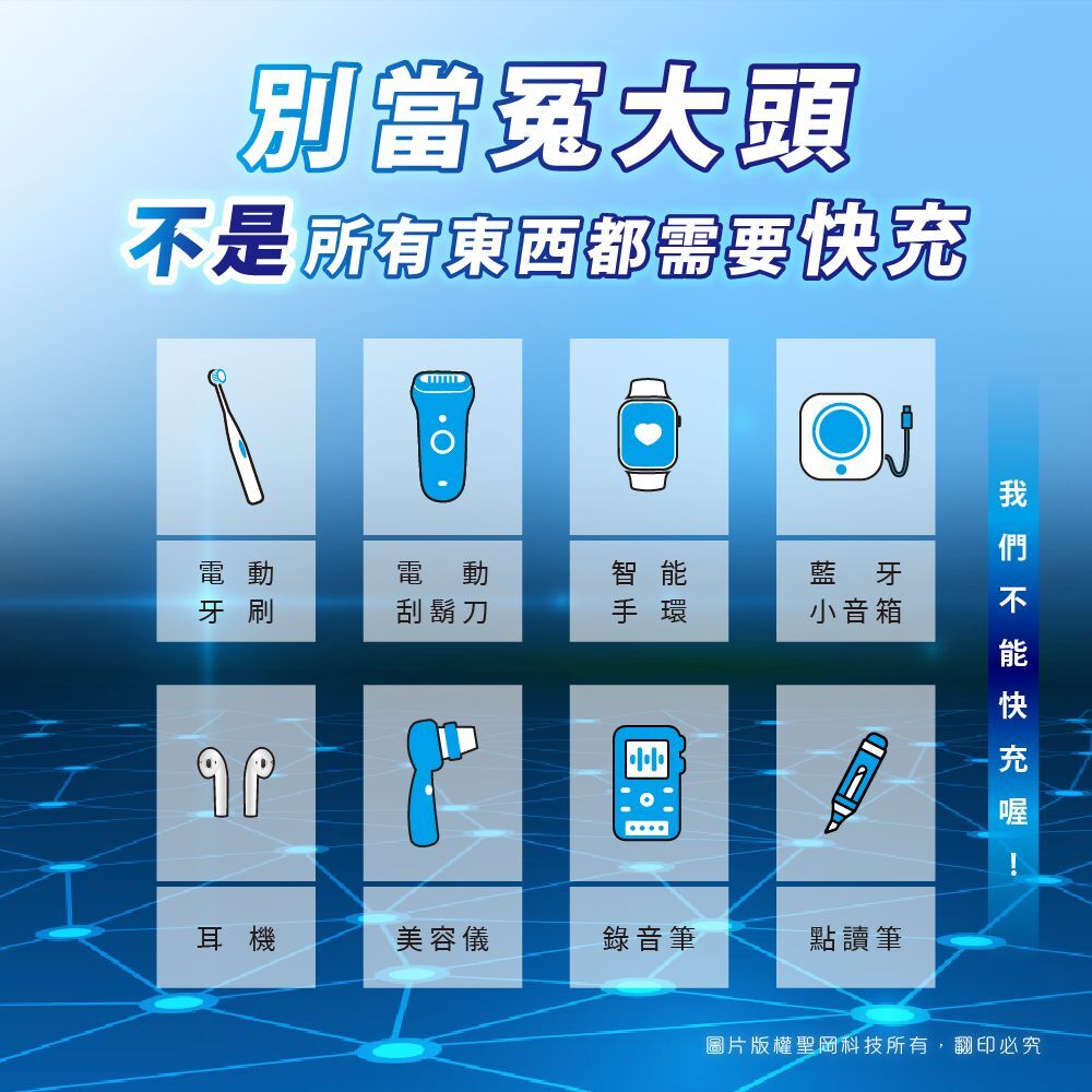 ● 不是所有東西都需要快充,小心別把產品充壞啦!