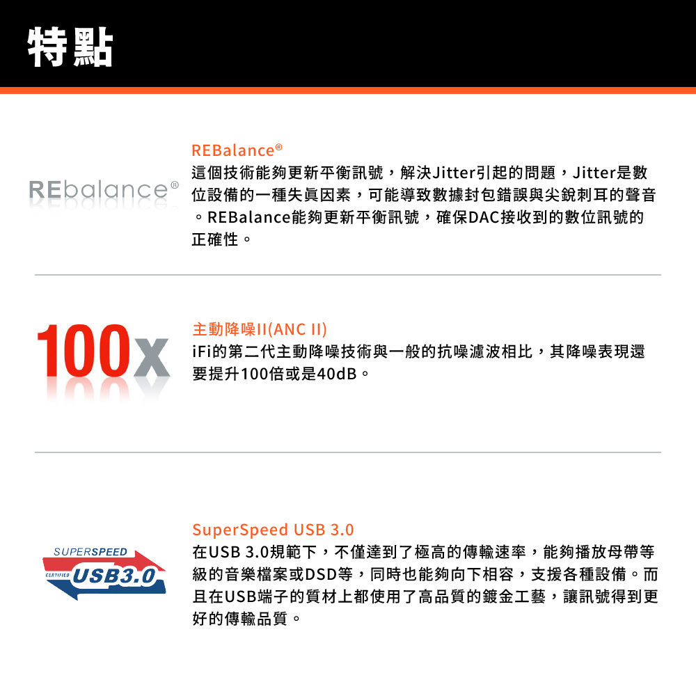 ● 主動降躁電路增加一倍,降躁效果加倍